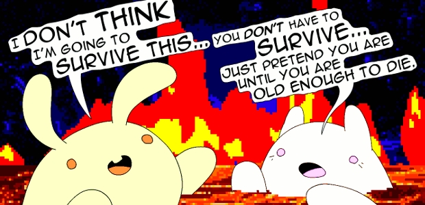 Nathalie Lawhead use game mechanics to express the feeling of being hopelessly optimistic while everything is breaking around you in EVERYTHING IS GOING TO BE OK.